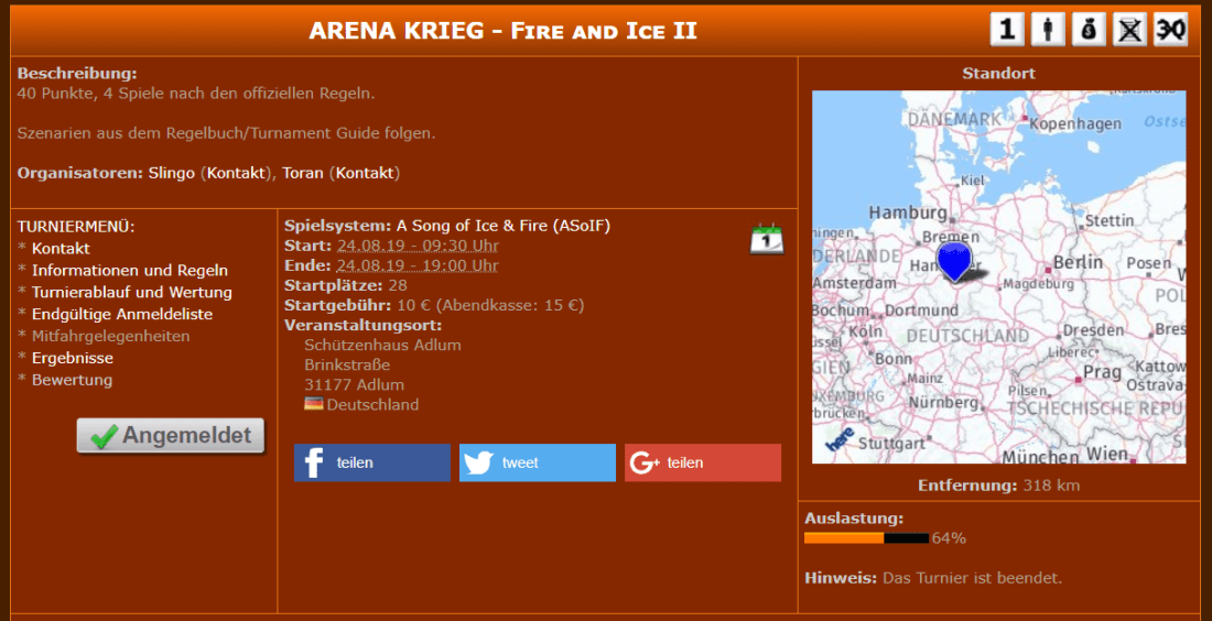 Micha spricht über das Turnier ARENA KRIEG - Fire and Ice II, das am 24.08.19 in Adlum stattfand. Er beschreibt seine Spiele und diskutiert am Ende auch noch etwas die Spielerlandschaft.